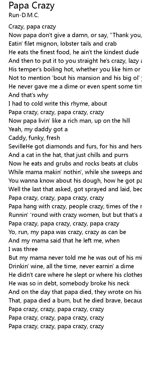 Yo, run, my papa was crazy, crazy as can be |