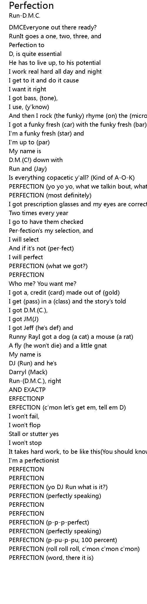 PERFECTION (yo DJ Run what is it?) |