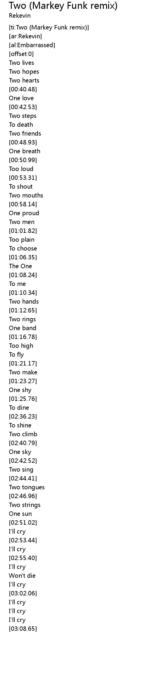 | [ti:Two (Markey Funk remix)] | |