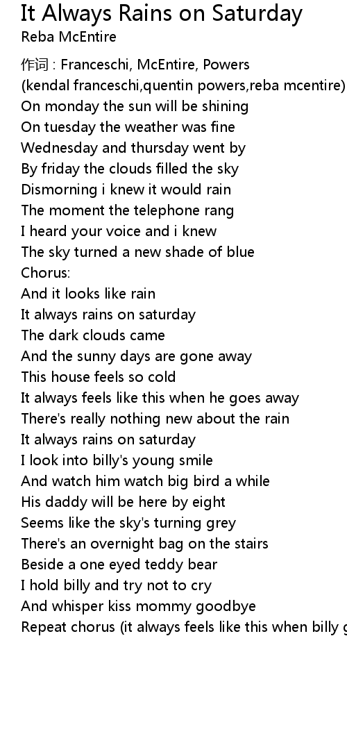 | 歌曲 | It Always Rains on Saturday |