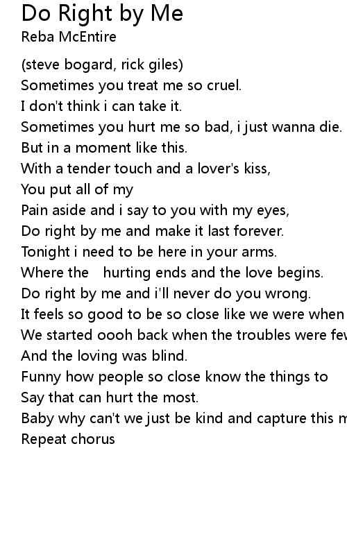 | Do right by me and i' ll never do you wrong. | |