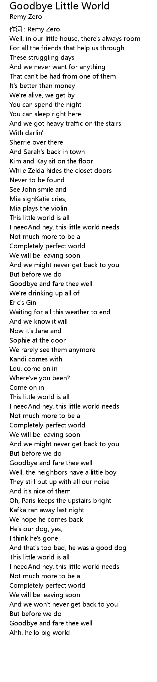 | 歌曲 | Goodbye Little World |