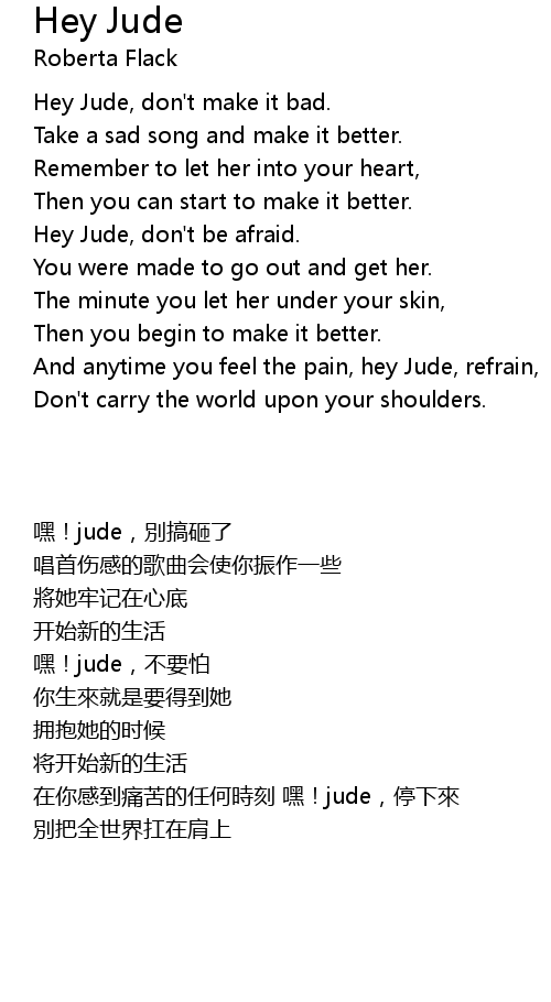 | [00:37.36] | Hey Jude, don't be afraid. |