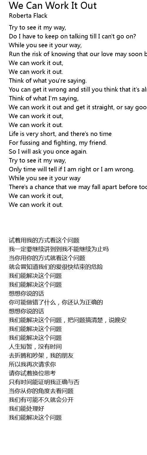 We can work it out, |