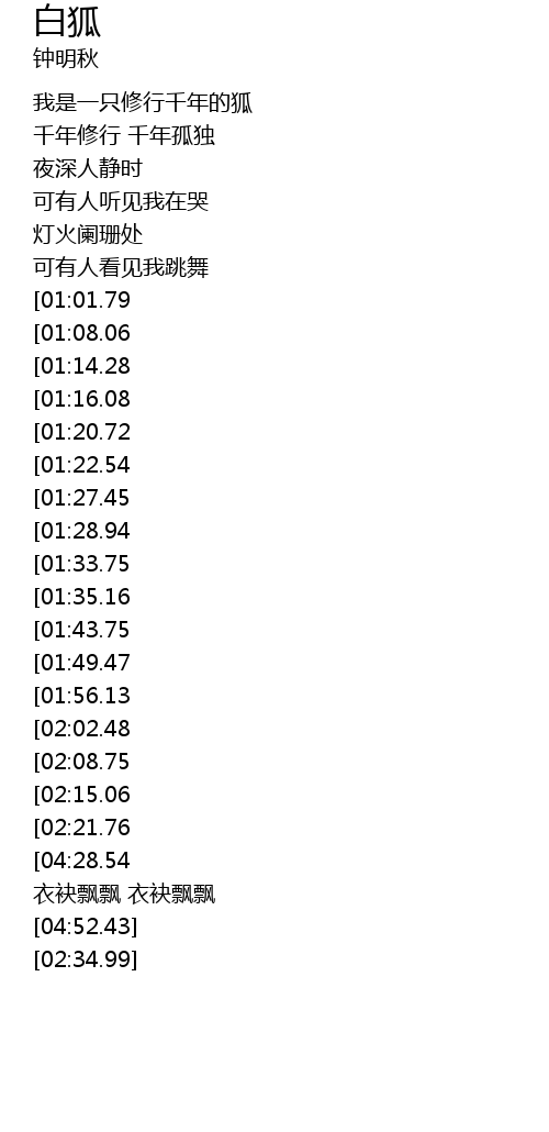 | [03:49.51][01:49.47] | 我是你千百年前放生的白狐 |