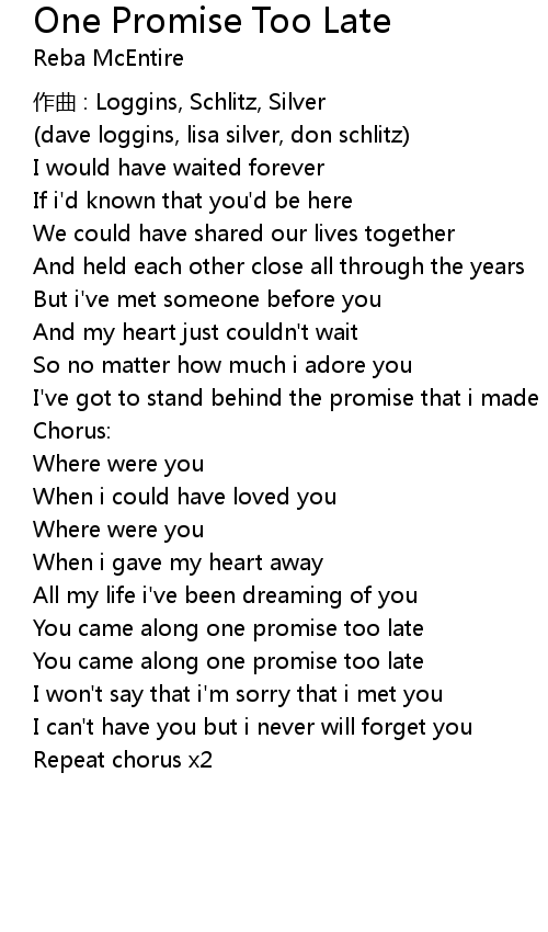 | 歌曲 | One Promise Too Late |