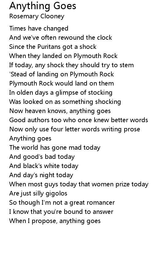 Now heaven knows, anything goes |