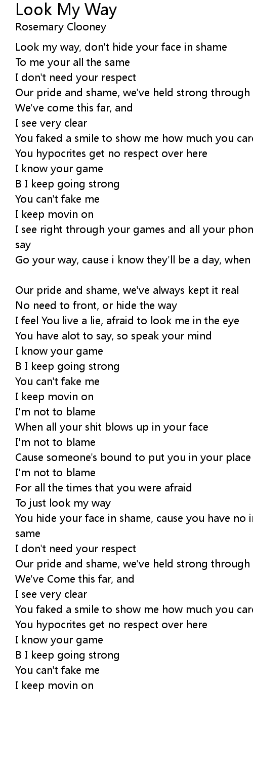 Go your way, cause i know they'll be a day, when you'll be forced to look my way |