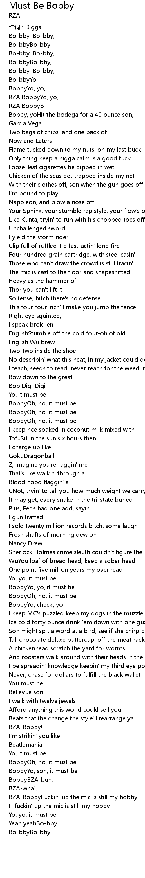 | RZA BobbyYo, yo, | |