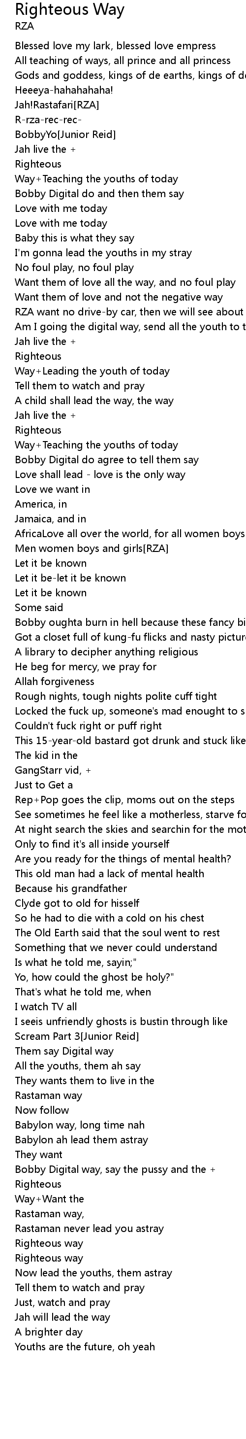 Bobby Digital way, say the pussy and the +