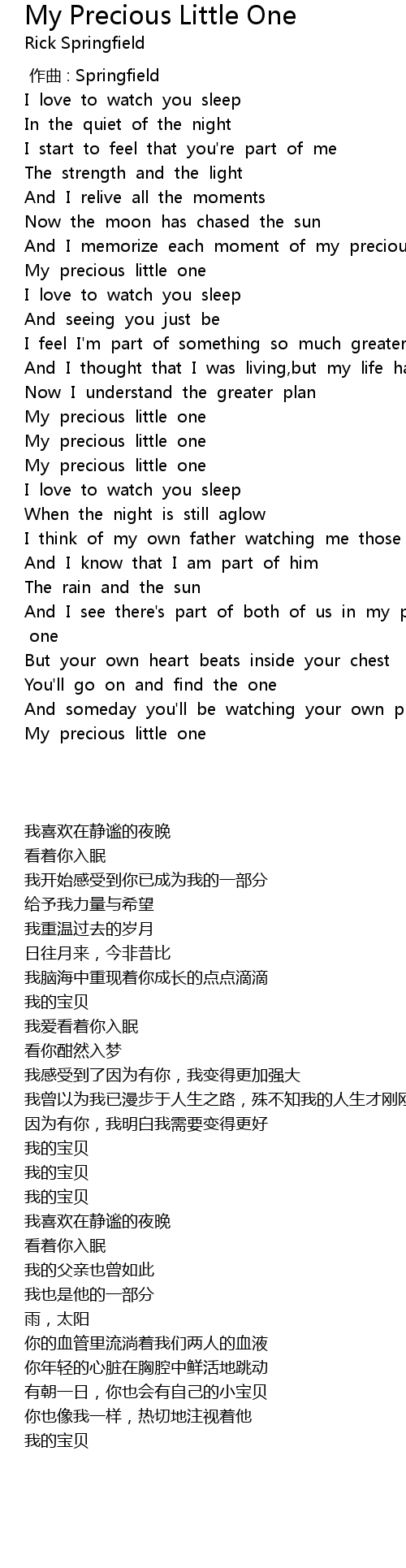 | [02:06.83] | And I see there' s part of both of us in my precious little one |