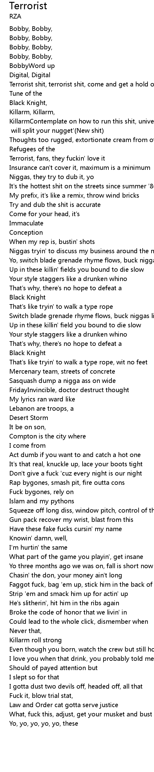 Terrorist shit, terrorist shit, come and get a hold of it |