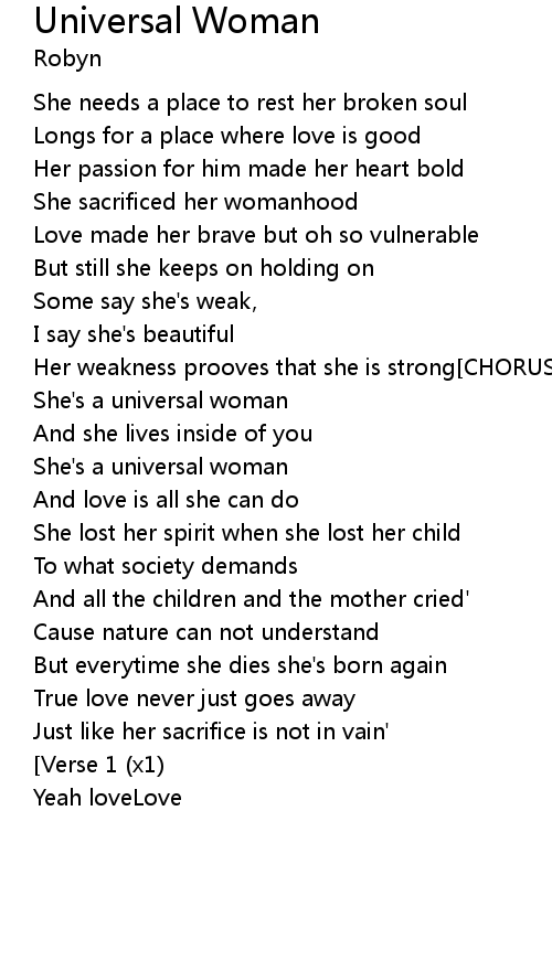 | [VERSE 1]She needs a place to rest her broken soul | |