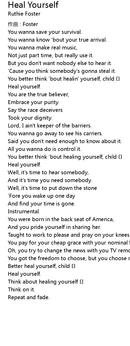 | You better think 'bout healing yourself, child | |