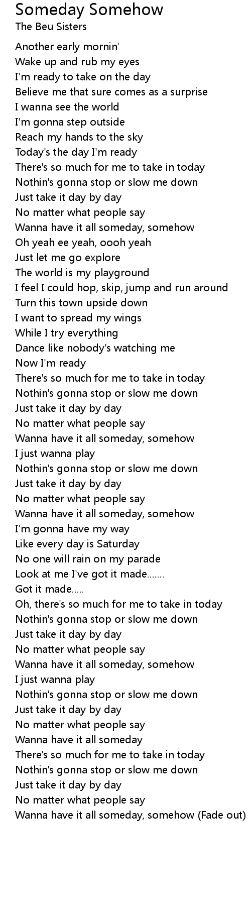 Wanna have it all someday, somehow |