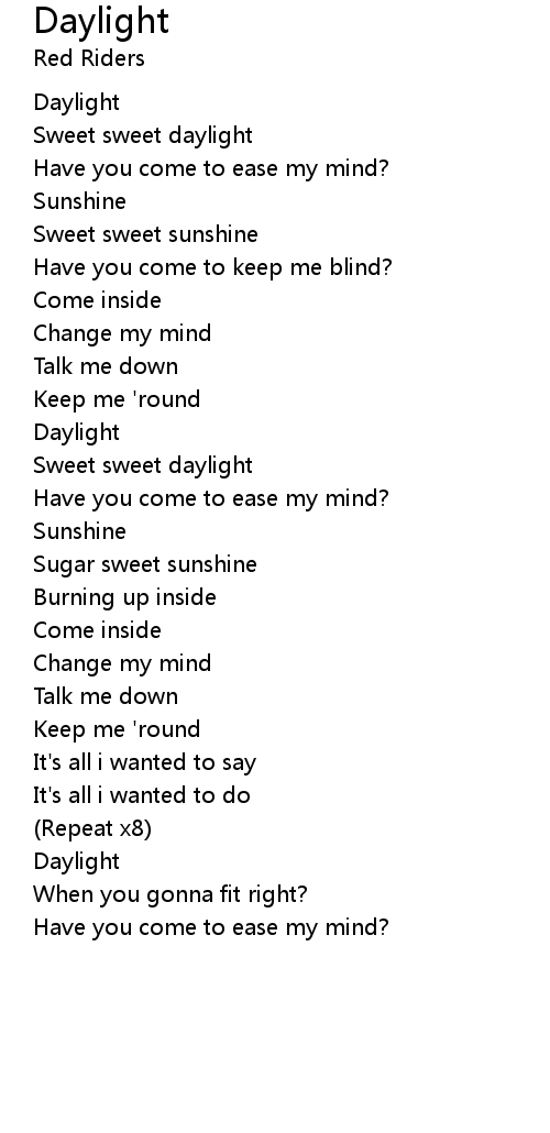| Sweet sweet daylight | |
