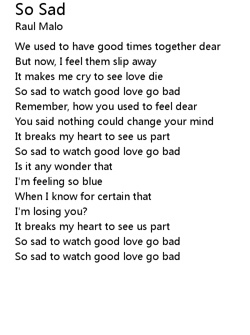 | So sad to watch good love go bad |