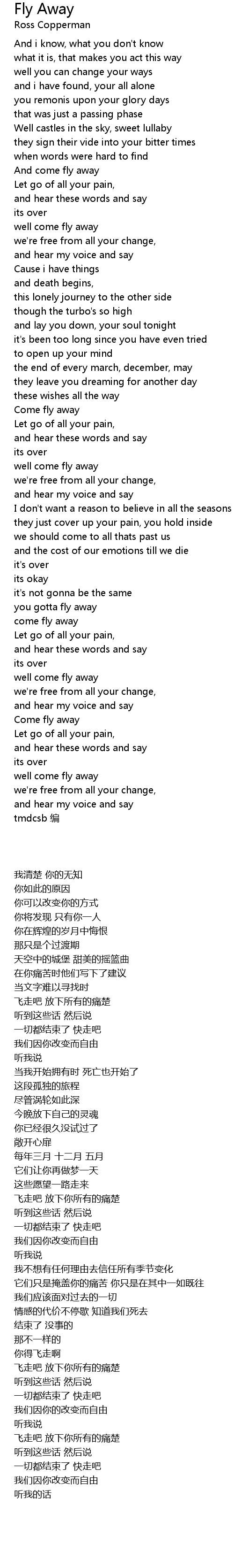 | [02:56.67] | 飞走吧 放下你所有的痛楚 |