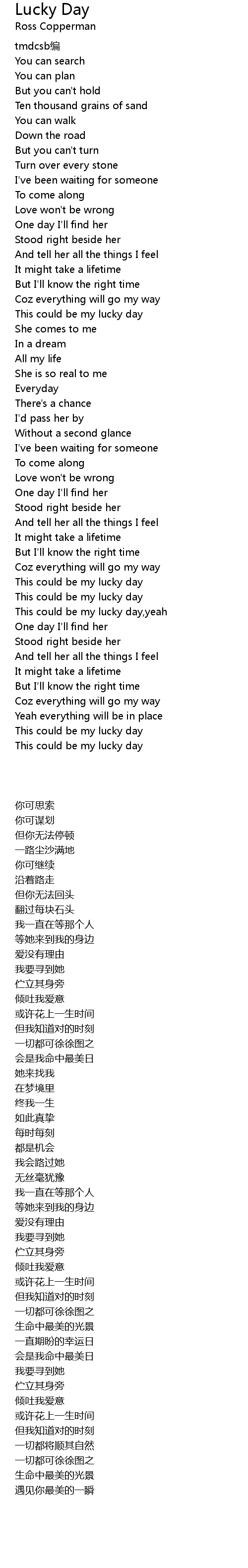 | [02:22.73] | 一直期盼的幸运日 |