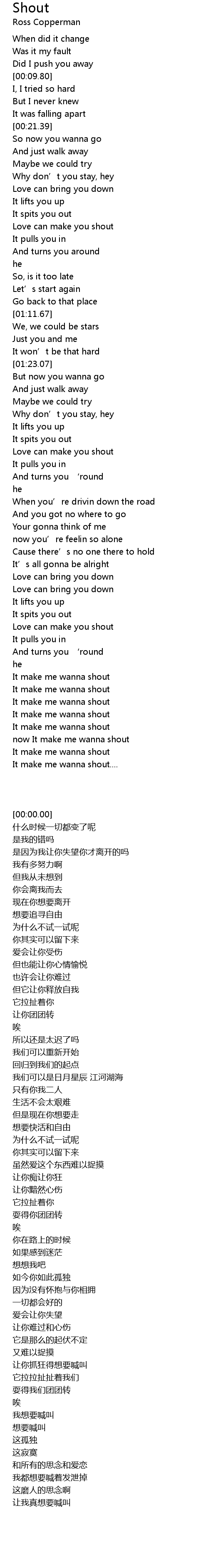 | [00:45.14] | Love can make you shout |