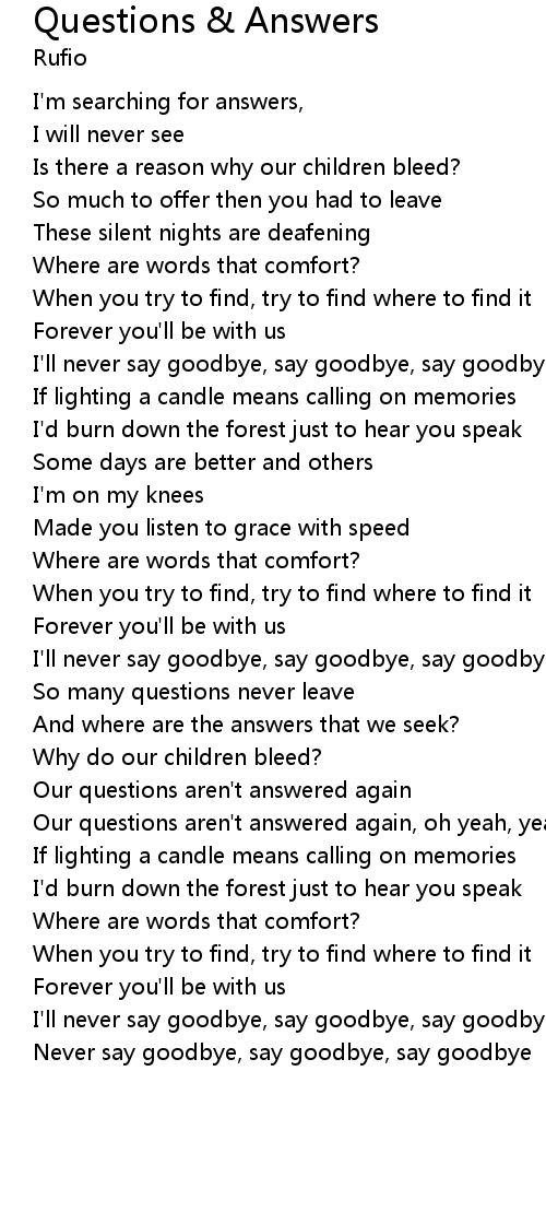 Our questions aren't answered again, oh yeah, yeah, yeah |