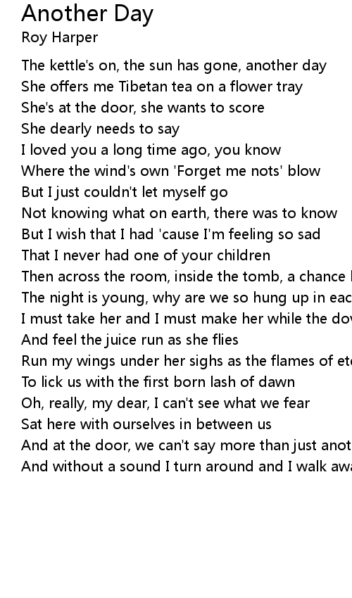 And at the door, we can't say more than just another day |