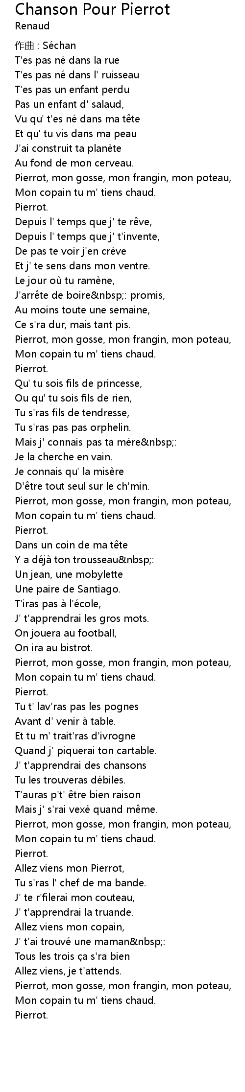 | Pierrot, mon gosse, mon frangin, mon poteau, | |