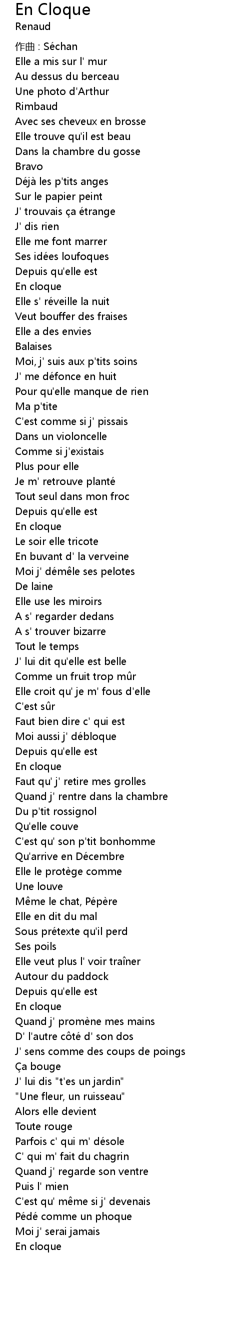 | 歌曲 | En Cloque |