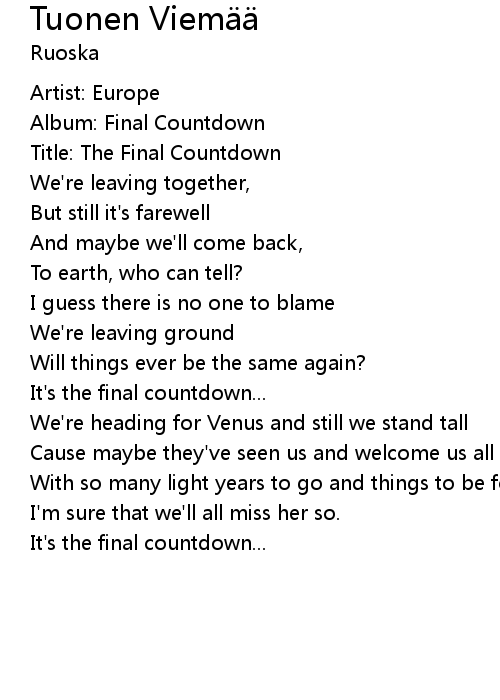 | [02:46.76] | It's the final countdown... |
