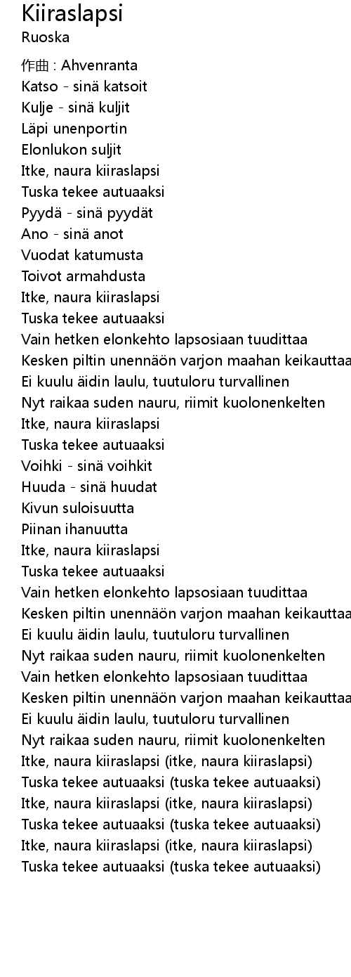 | Itke, naura kiiraslapsi itke, naura kiiraslapsi | |