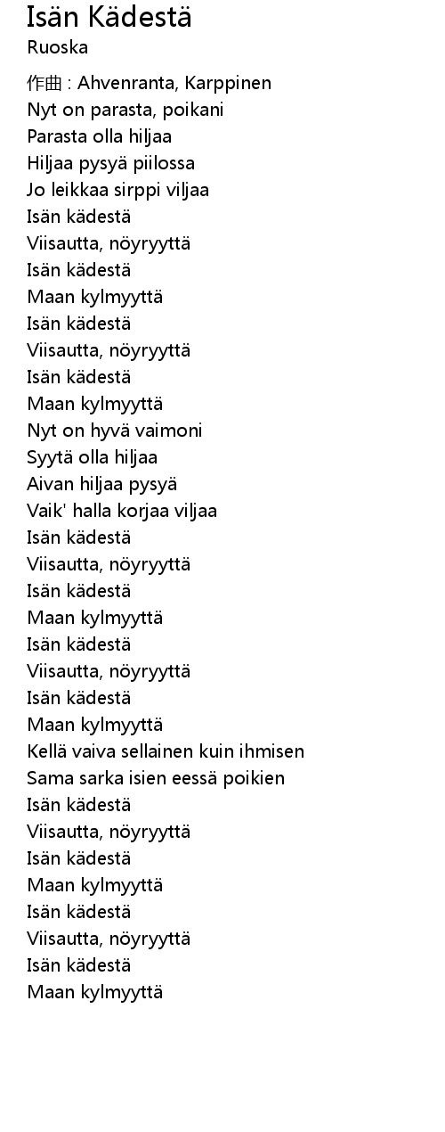 | zuò qǔ : Ahvenranta, Karppinen | |