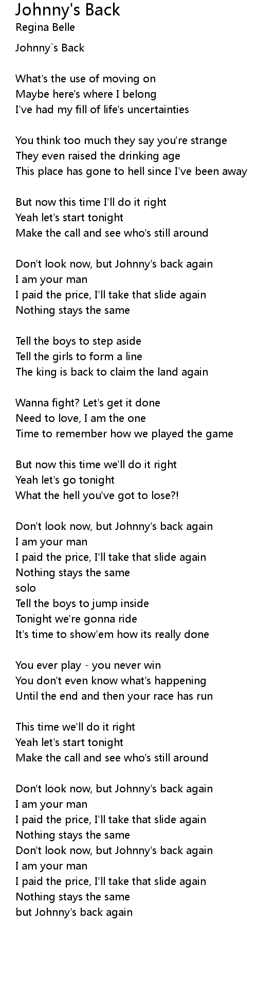 Johnny`s Back |
