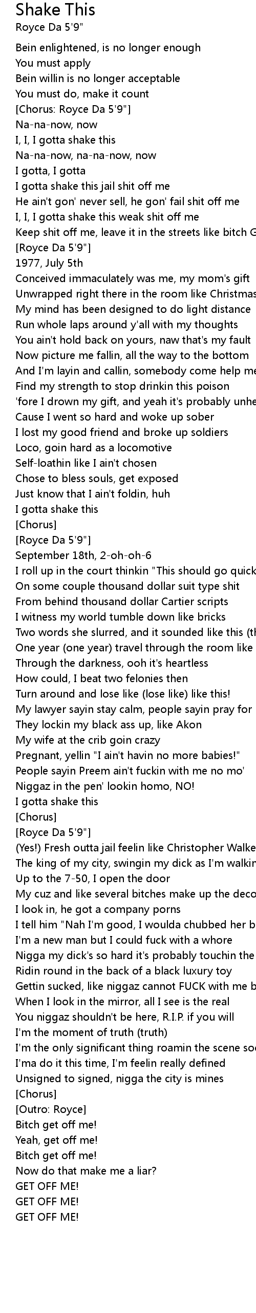 Keep shit off me, leave it in the streets like bitch GET OFF ME! |