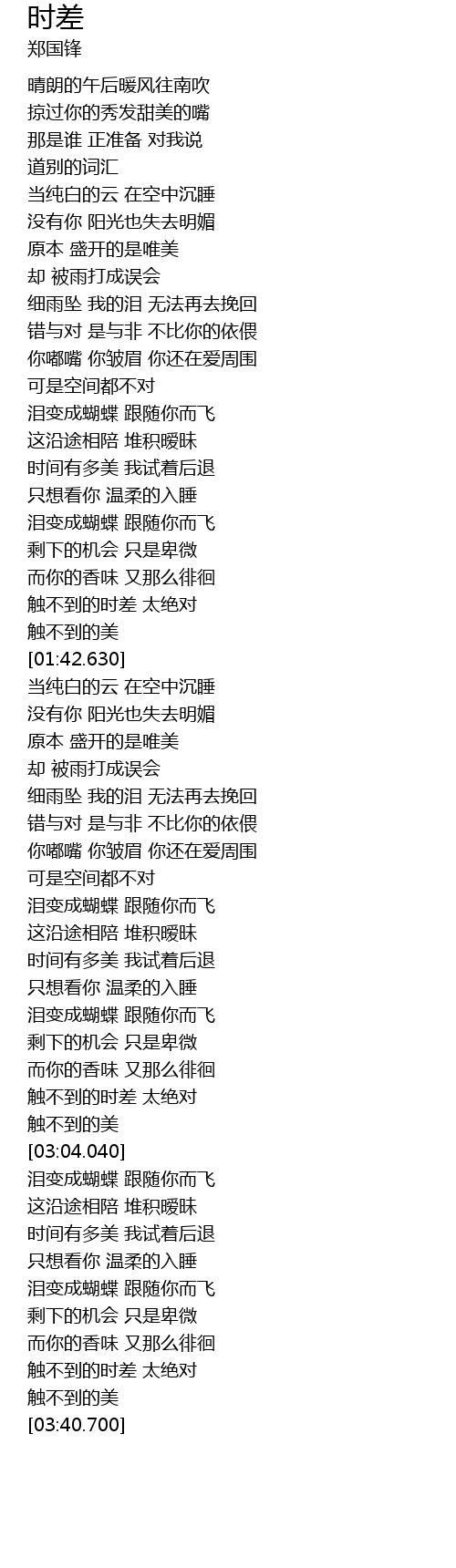 | [03:21.660] | 泪变成蝴蝶 跟随你而飞 |