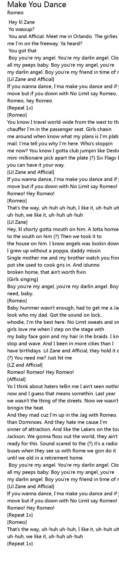 | If you wanna dance, I'ma make you dance and if you wanna move, I'ma make you move but if you down with No Limit say Romeo! | |