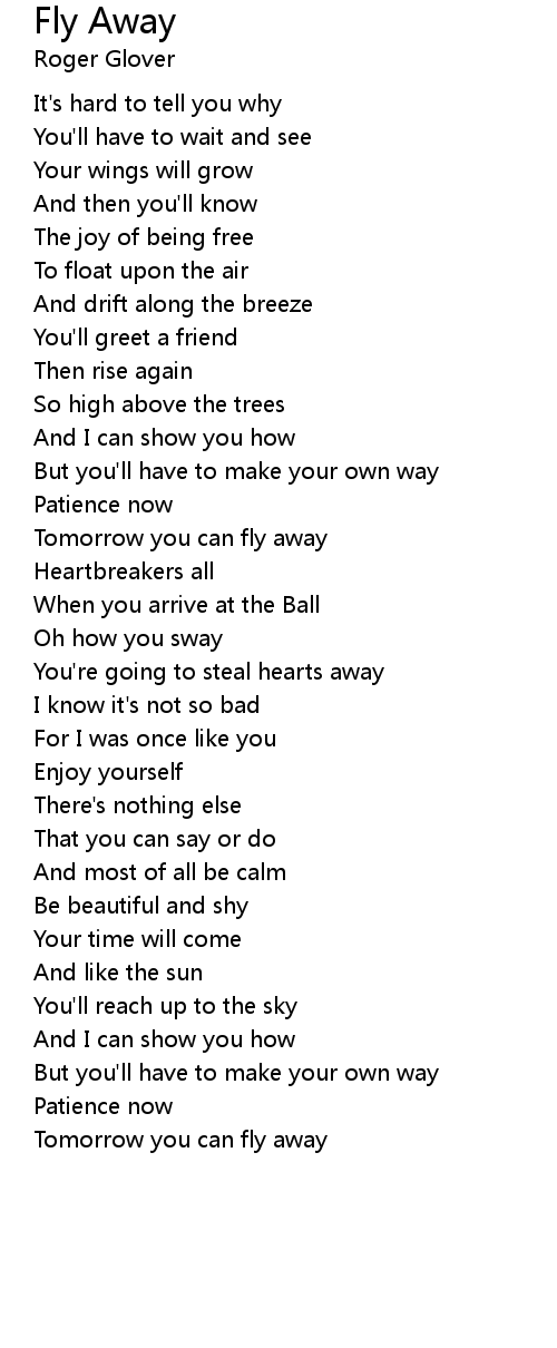 Tomorrow you can fly away |
