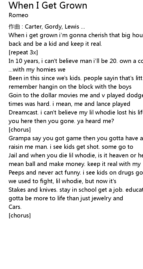 | 歌曲 | When I Get Grown |
