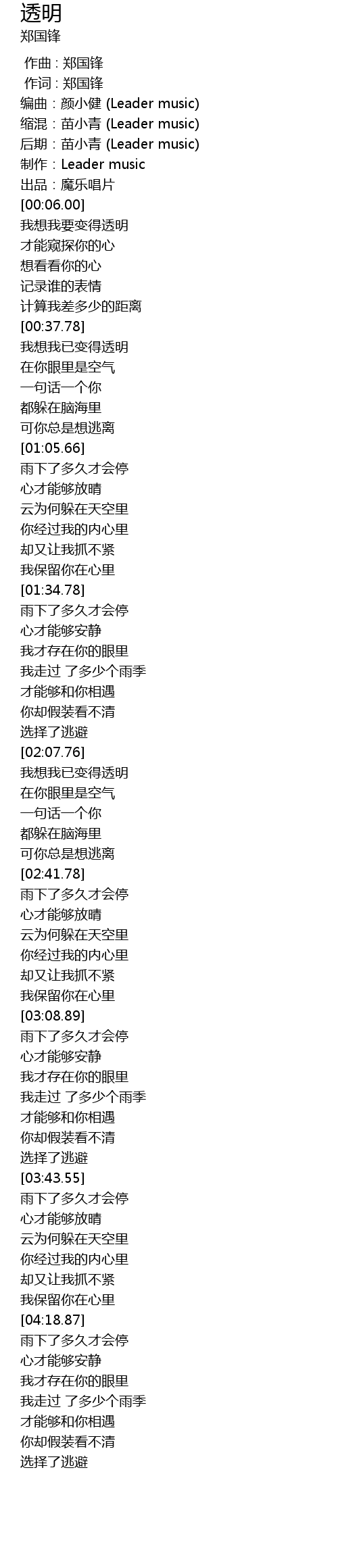 | [00:04.00] | 制作:Leader music |
