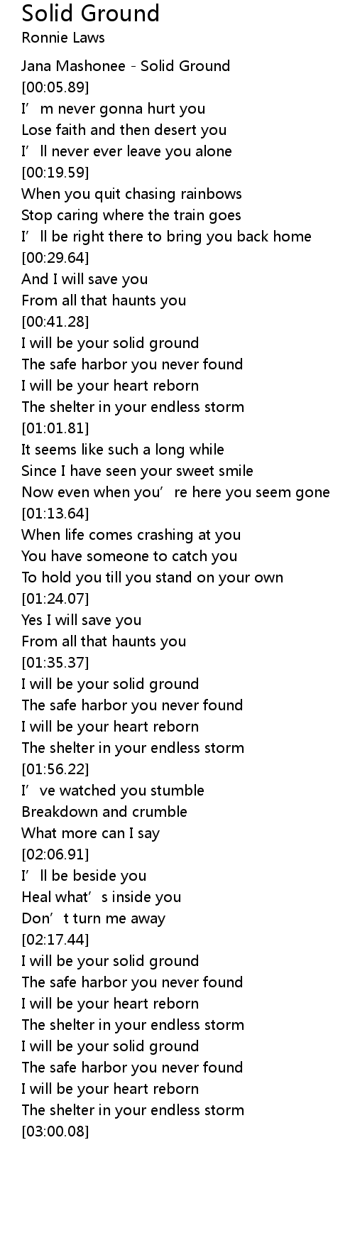 | [00:01.12] | Jana Mashonee Solid Ground |