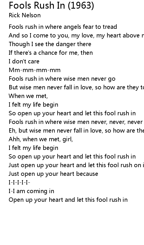 Fools rush in where wise men never, never, never go |