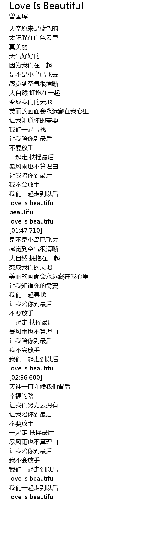 | [02:06.750] | 美丽的画面会永远藏在我心里 |