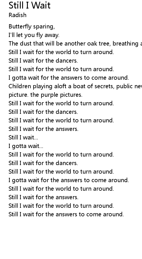 Still I wait for the answers to come around. |