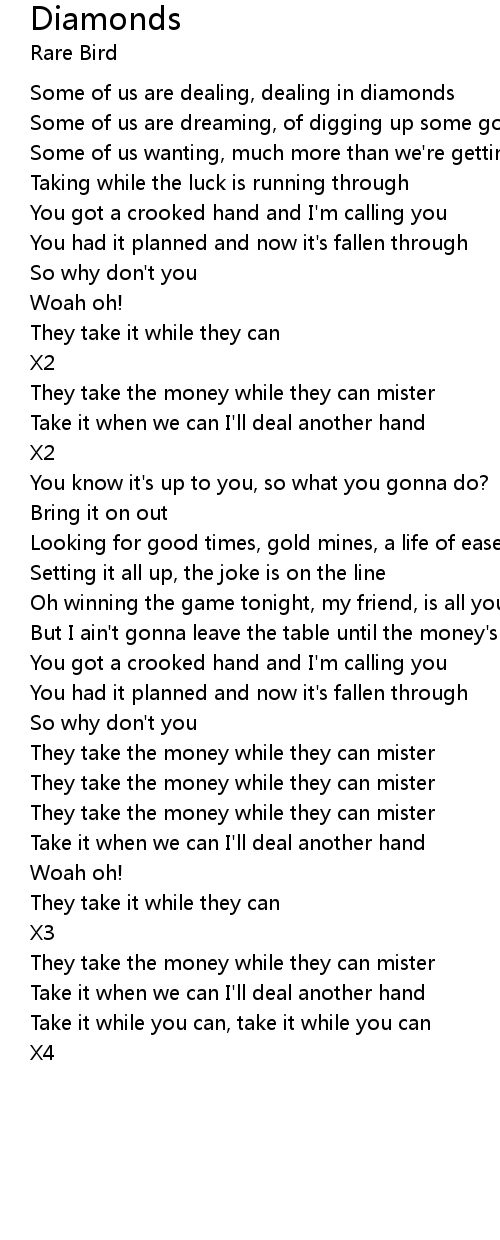 Some of us are dealing, dealing in diamonds