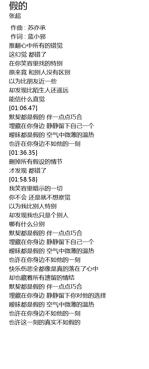 | [01:07.03] | 默契都是假的 伴一点点巧合 |