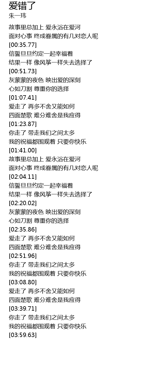 | [00:22.59] | 故事里总加上 爱永浴在爱河 |