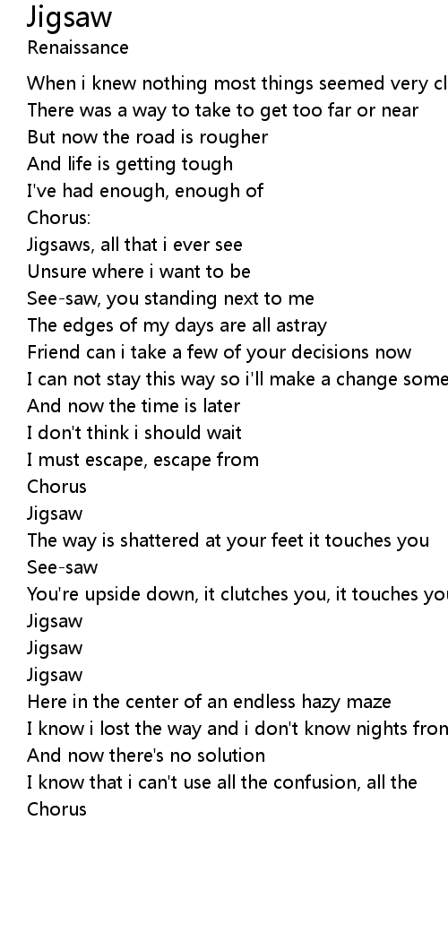 Jigsaws, all that i ever see |