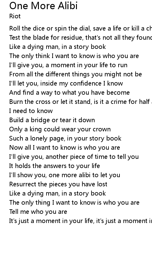 I'll show you, one more alibi to let you |