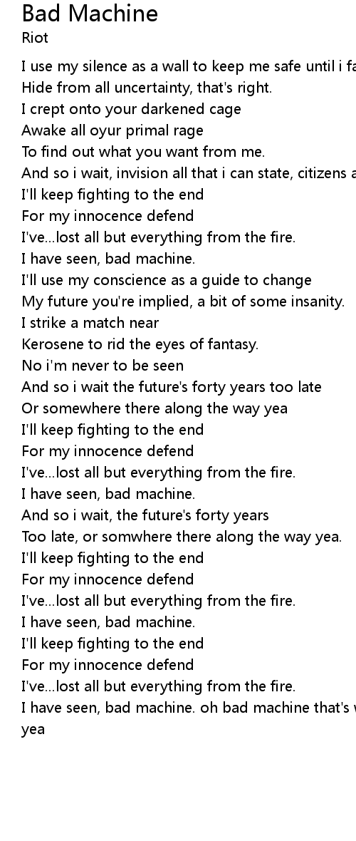 I have seen, bad machine. oh bad machine that's what i am yea oh that's right yea