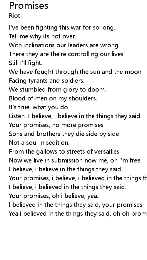 Your promises, i believe, i believed in the things they said, your promises. |