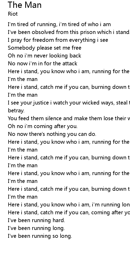 | Here i stand, catch me if you can, burning down the highway | |